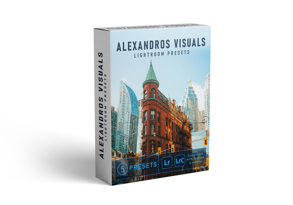 Introducing my "Alexandros Visuals Preset Pack", containing 5 custom presets & 3 Grain Adjustments to give your photos the style and look I apply on my own work.